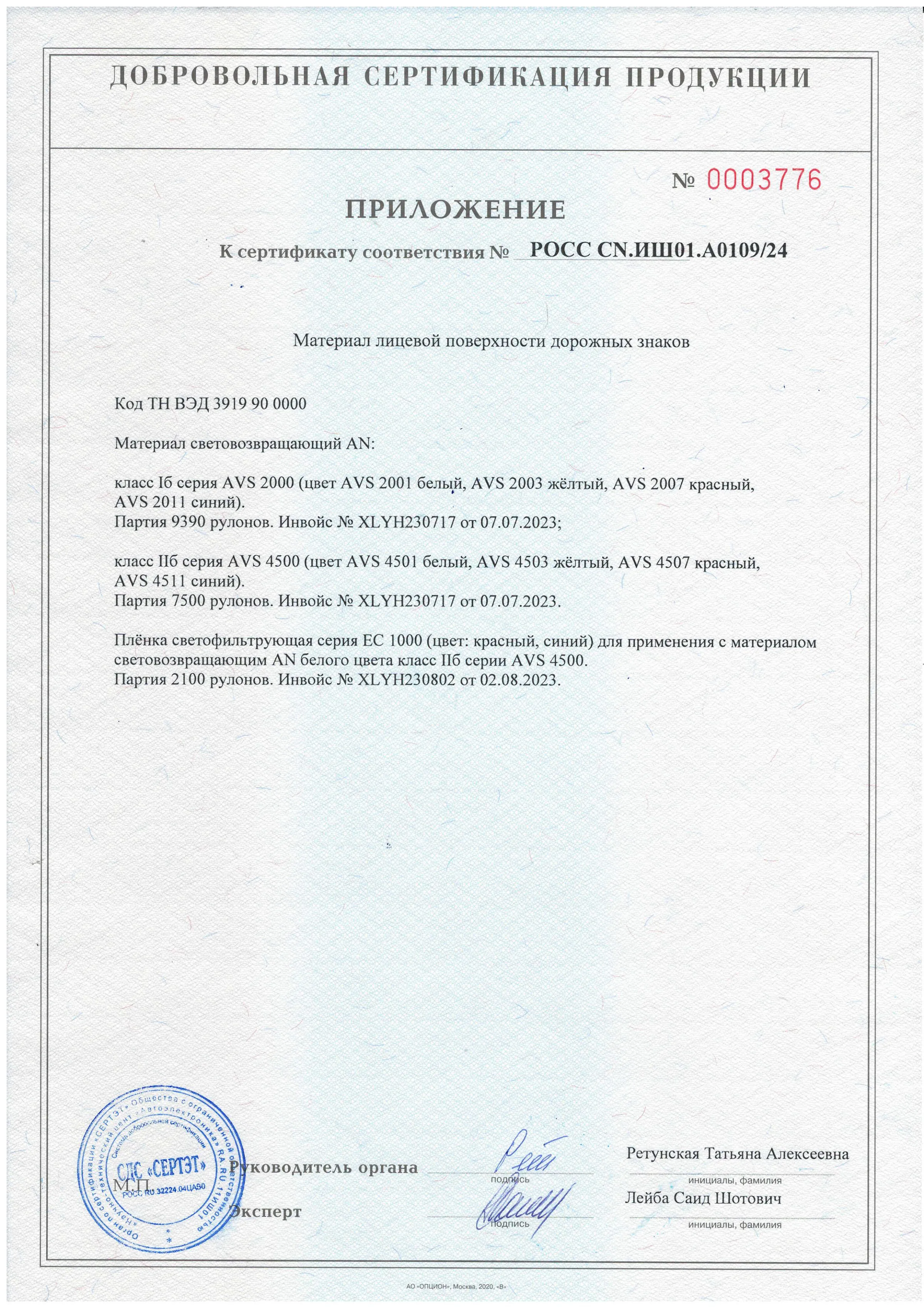 Пленка светофильтрующая серия ЕС 1000 (цвет: красный, синий) для применения с материалом световозвращающим AN белого цвета класс IIб серии AVS 4500.