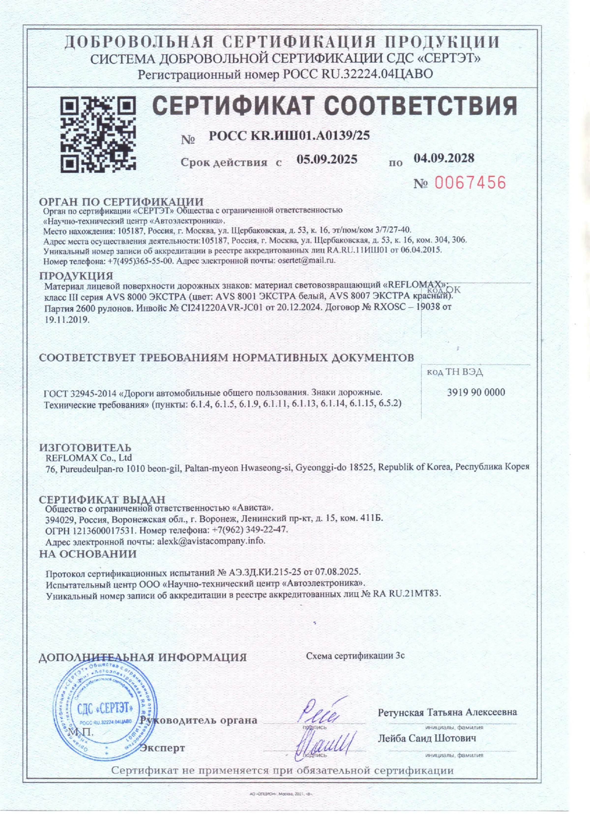 Материал лицевой поверхности дорожных знаков: материал световозвращающий «REFLOMAX»: